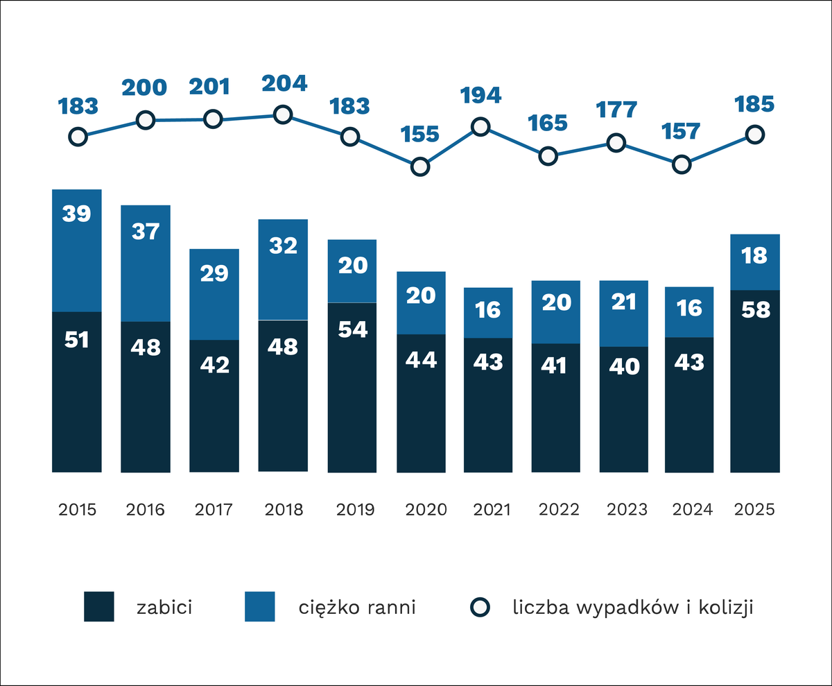 W grudniu 2025 roku doszło do 29 wypadków z udziałem pieszych w miejscach niedozwolonych.